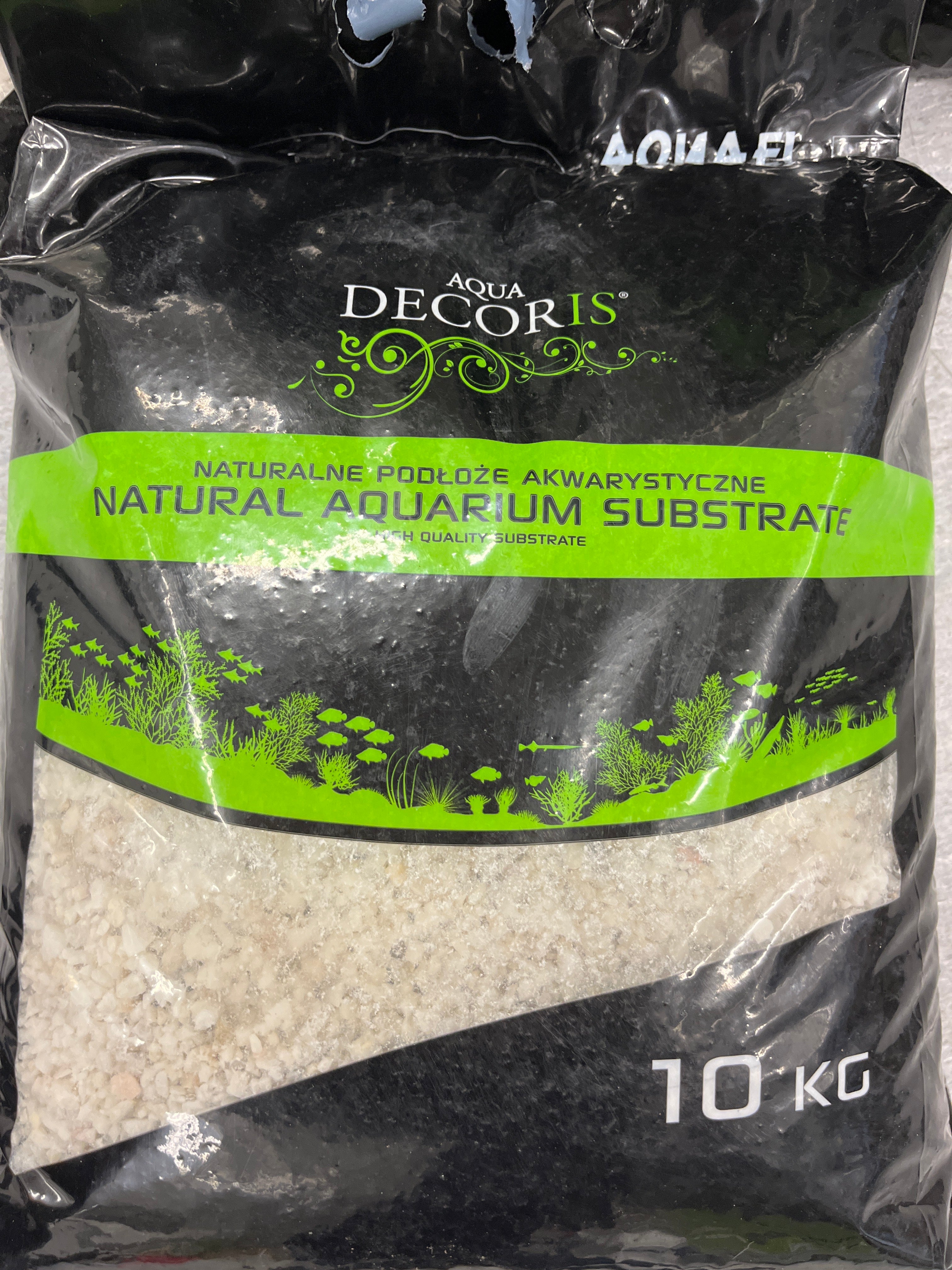 Vitivalkoinen pohjasora, hyvä esimerkiksi miljoonakaloille. Saattaa kovettaa vettä.